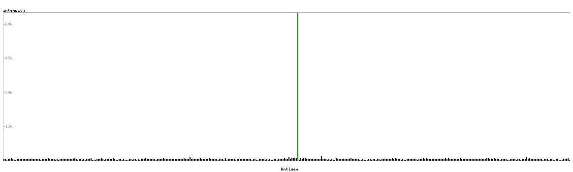 The curve in blue displays the predicted antigenicity i.e. the tendency for different regions of the protein to generate an immune response, with peak regions being predicted to be more antigenic.The curve shows average values based on a sliding window approach using an in-house propensity scale. (read more).