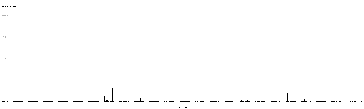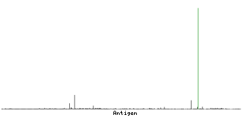 The curve in blue displays the predicted antigenicity i.e. the tendency for different regions of the protein to generate an immune response, with peak regions being predicted to be more antigenic.The curve shows average values based on a sliding window approach using an in-house propensity scale. (read more).