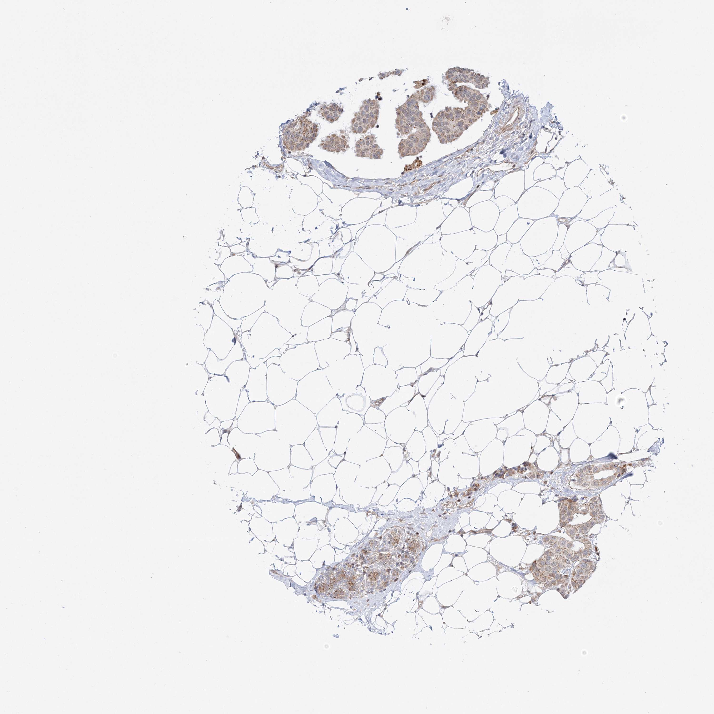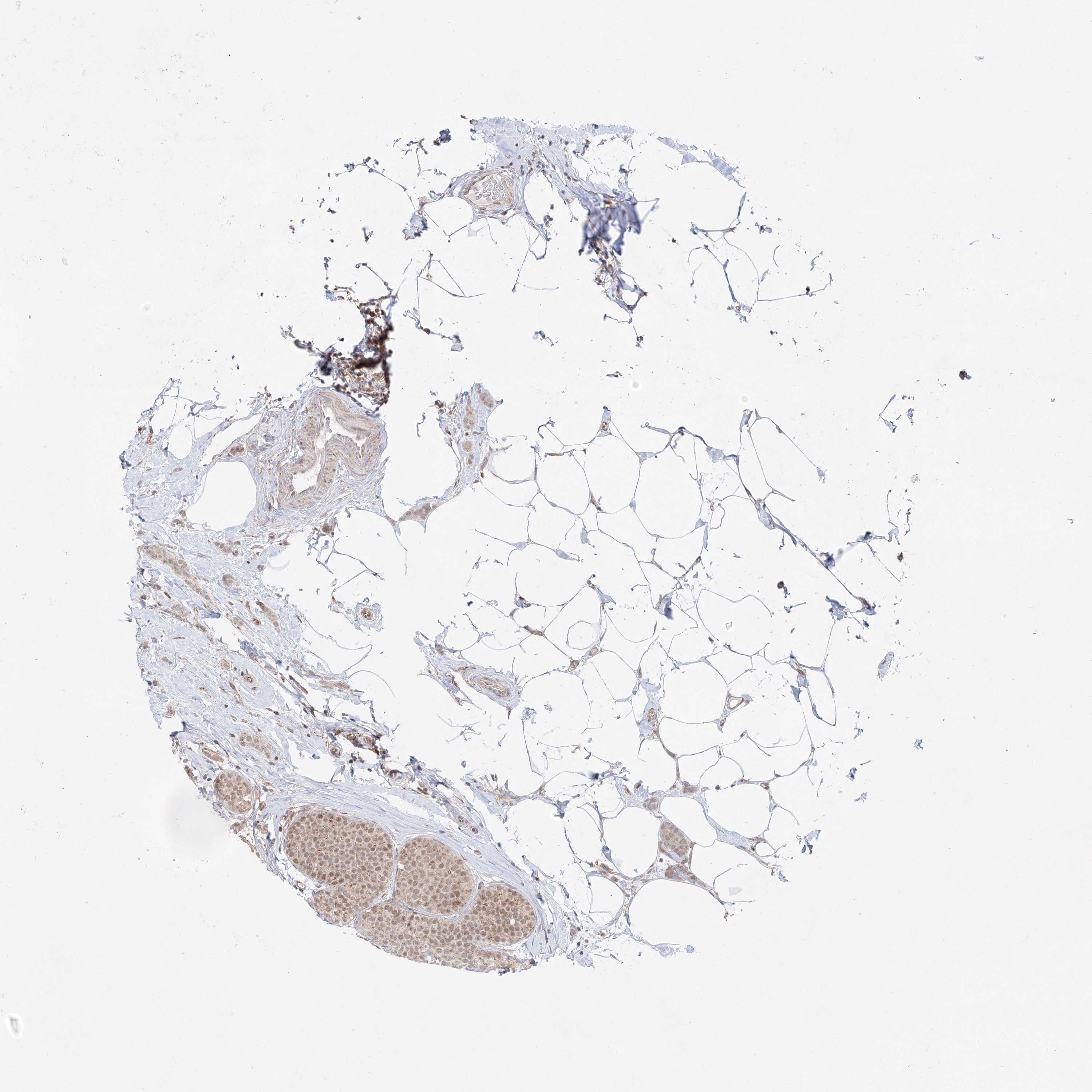 Antibody staining in the annotated cell types in the current human tissue is reported as not detected, low, medium, or high, based on conventional immunohistochemistry profiling in selected tissues. This score is based on the combination of the staining intensity and fraction of stained cells.