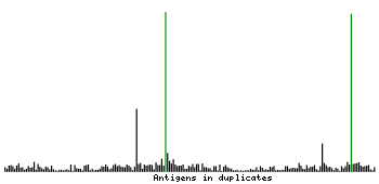 At the top of the view, the position of the antigen (identified by the corresponding HPA identifier) is shown as a green bar. A yellow triangle on the bar indicates a <100% sequence identity to the protein target.