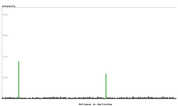 Below the antigens, the maximum percent sequence identity of the protein to all other proteins from other human genes is displayed, using a sliding window of 10 aa residues (HsID 10) or 50 aa residues (HsID 50). The region with the lowest possible identity is always selected for antigen design, with a maximum identity of 60% allowed for designing a single-target antigen (read more).