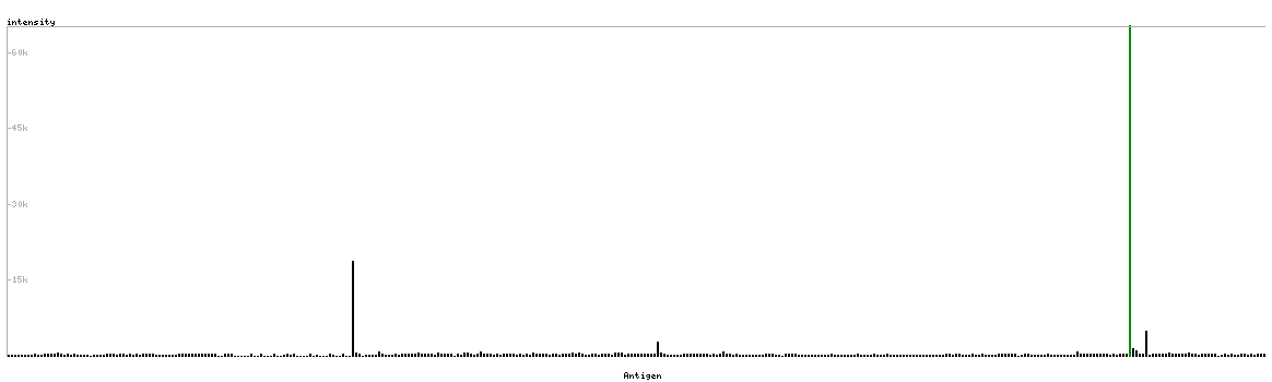 The curve in blue displays the predicted antigenicity i.e. the tendency for different regions of the protein to generate an immune response, with peak regions being predicted to be more antigenic.The curve shows average values based on a sliding window approach using an in-house propensity scale. (read more).