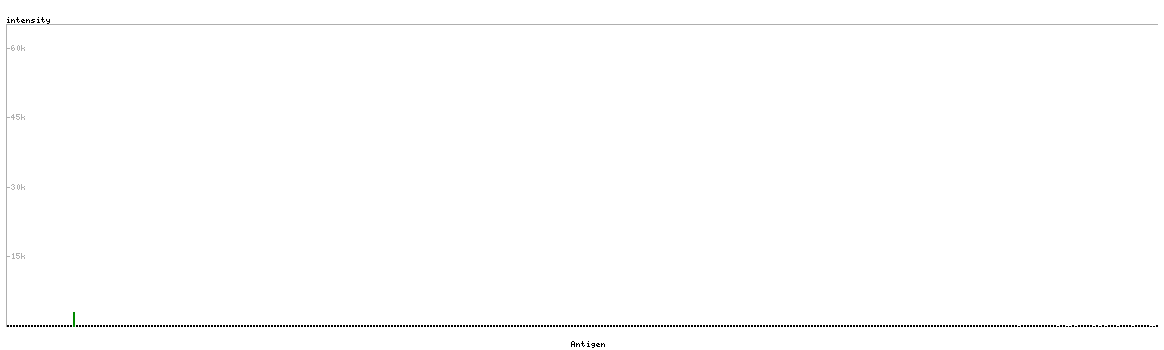 At the top of the view, the position of the antigen (identified by the corresponding HPA identifier) is shown as a green bar. A yellow triangle on the bar indicates a <100% sequence identity to the protein target.