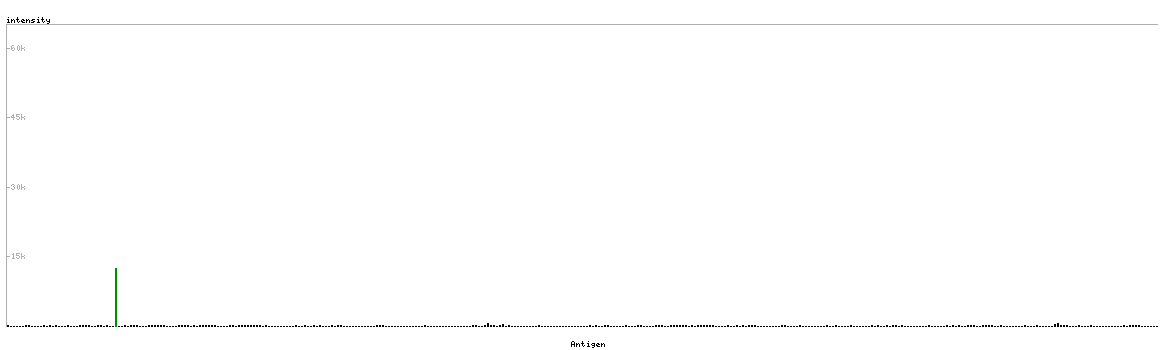 The curve in blue displays the predicted antigenicity i.e. the tendency for different regions of the protein to generate an immune response, with peak regions being predicted to be more antigenic.The curve shows average values based on a sliding window approach using an in-house propensity scale. (read more).